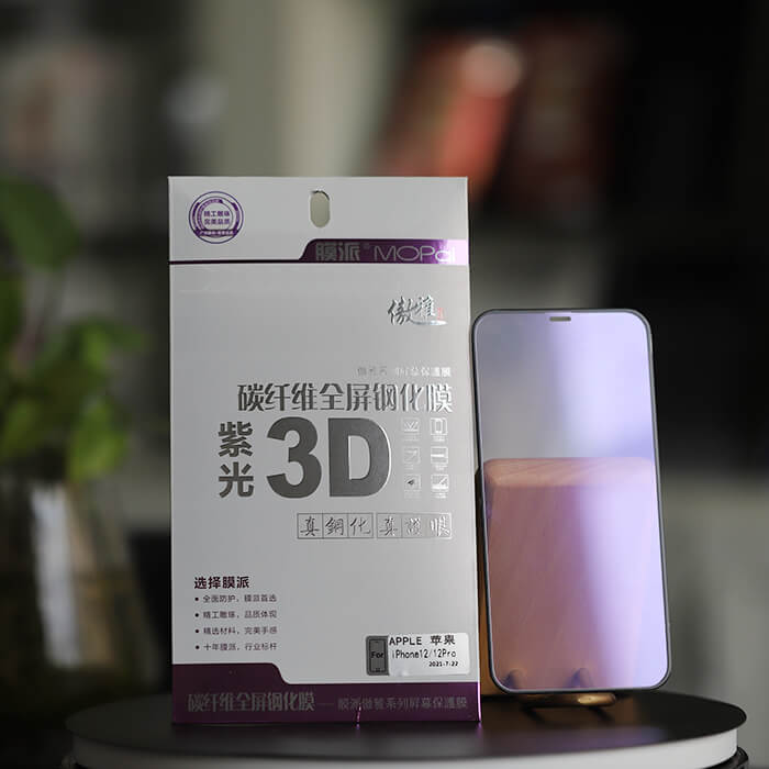 傲雅系列碳纤维紫光白光全屏软边钢化膜